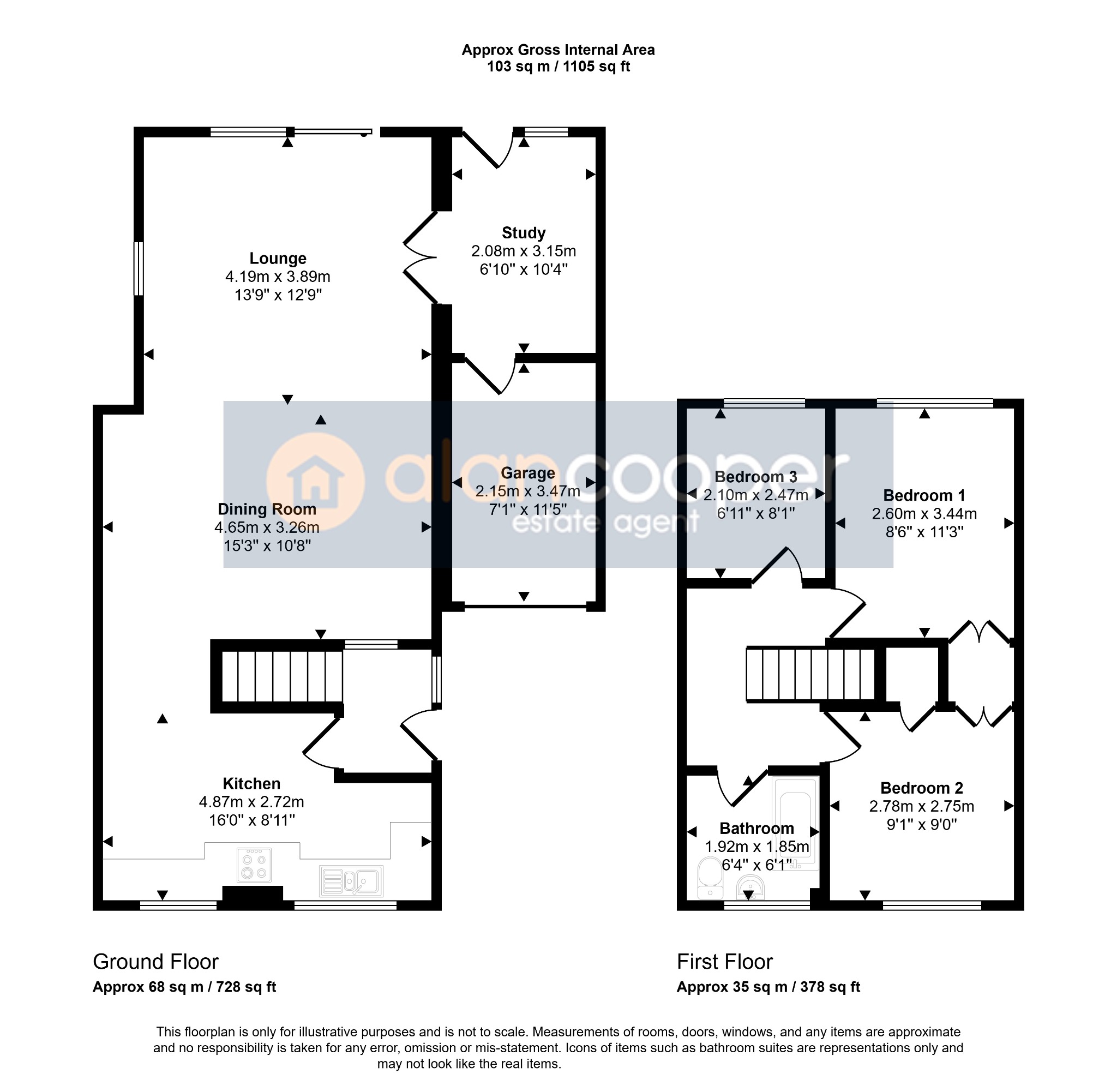 We have not tested any of the electrical, central heating or sanitary ware appliances. Purchasers should make their own investigations as to the workings of the relevant items. Floor plans are for identification purposes only and not to scale. All room measurements and mileages quoted in these sales details are approximate. Subjective comments in these details imply the opinion of the selling Agent at the time these details were prepared. Naturally, the opinions of purchasers may differ. These sales details are produced in good faith to offer a guide only and do not constitute any part of a contract or offer. We would advise that fixtures and fittings included within the sale are confirmed by the purchaser at the point of offer. Images used within these details are under copyright to Alan Cooper Estates and under no circumstances are to be reproduced by a third party without prior permission.