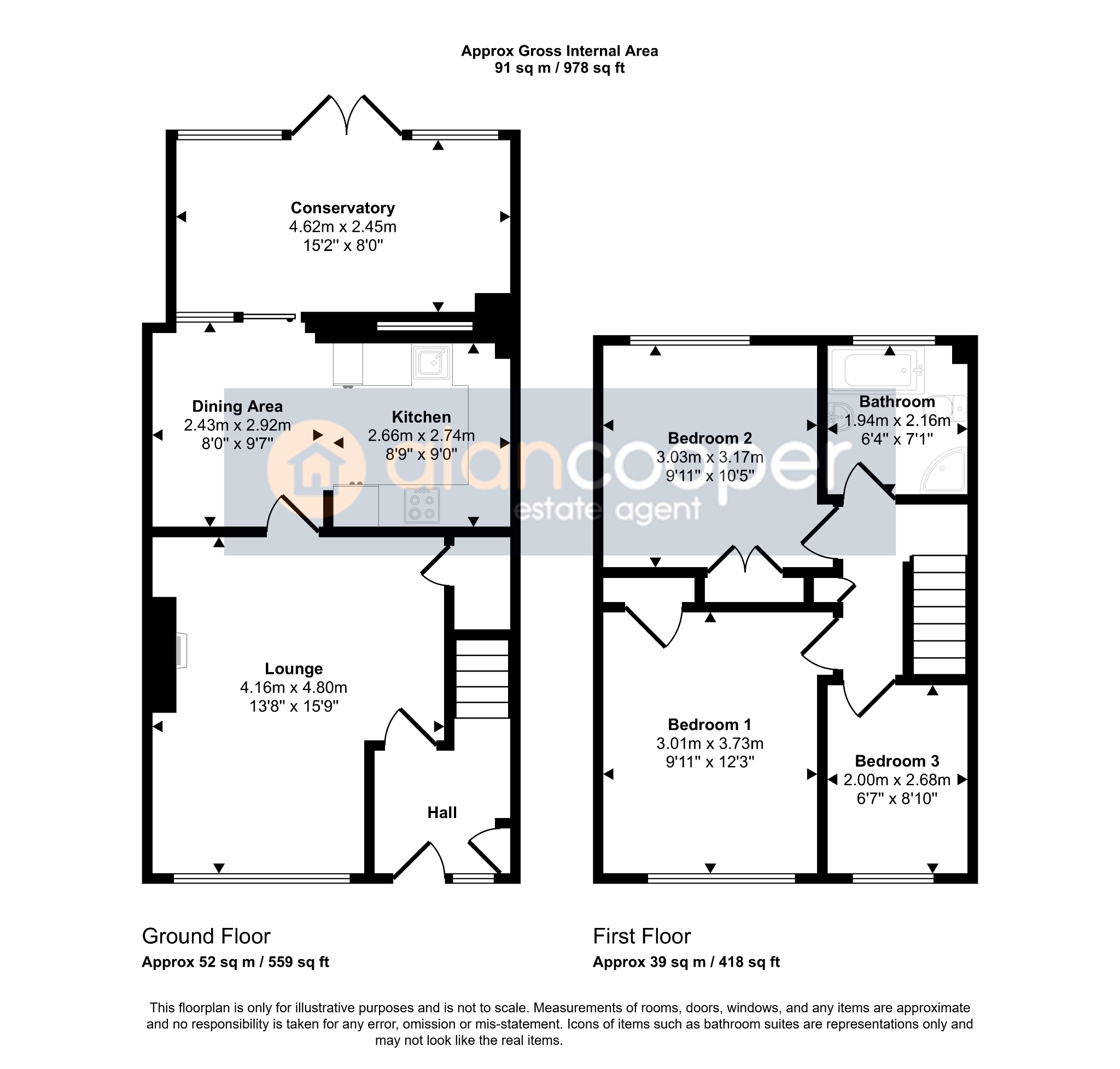 We have not tested any of the electrical, central heating or sanitary ware appliances. Purchasers should make their own investigations as to the workings of the relevant items. Floor plans are for identification purposes only and not to scale. All room measurements and mileages quoted in these sales details are approximate. Subjective comments in these details imply the opinion of the selling Agent at the time these details were prepared. Naturally, the opinions of purchasers may differ. These sales details are produced in good faith to offer a guide only and do not constitute any part of a contract or offer. We would advise that fixtures and fittings included within the sale are confirmed by the purchaser at the point of offer. Images used within these details are under copyright to Alan Cooper Estates and under no circumstances are to be reproduced by a third party without prior permission.